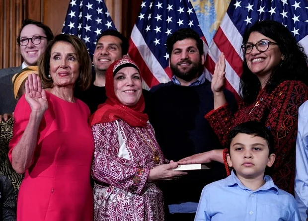 Comme elle l’avait promis, Rashida Tlaib, la première membre du Congrès américain d’origine palestinienne, était vêtue de la thobe traditionnelle palestinienne de sa mère lors de sa cérémonie d’assermentation. Ilhan Omar est la première Américaine d’origine somalienne en poste au Congrès, tandis qu’Alexandria Ocasio-Cortez est une autre sympathisante déclarée des droits des Palestiniens.