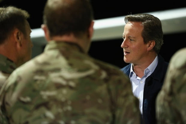Photo : Le Premier ministre britannique David Cameron rencontre des pilotes et des techniciens sur la base de la Royal Air Force à Akrotiri (AFP).