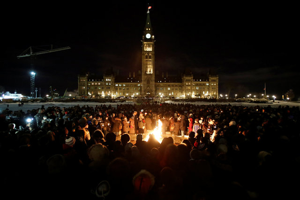 Photo : veillée autour de la Flamme du centenaire, sur la colline du parlement à Ottawa (Canada), suite à une fusillade mortelle dans une mosquée de Québec, le 30 janvier 2017 (Reuters).