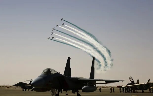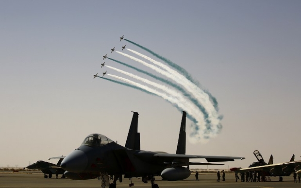 Photo : des avions participent à un défilé aérien lors d’un exercice conjoint des forces aériennes soudanaises et saoudiennes à la base aérienne de Marwa, près de Méroé, à environ 350 kilomètres au nord de Khartoum, le 9 avril 2017 (AFP).