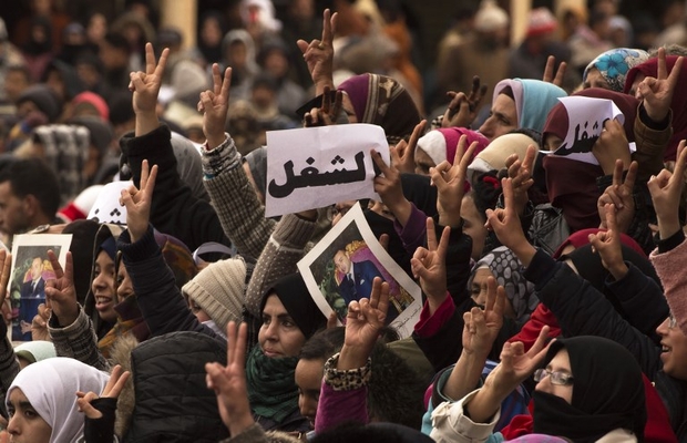 Ainsi, sur le front social, la détermination de la population de Jerada, qui a bravé l’interdiction de défiler dans les rues, s’est matérialisée par le slogan « Plutôt la mort que la soumission ». Dans cette ville sinistrée du nord-est du Maroc, le décès de deux mineurs en décembre dernier a été suivie de marches, sit-in et débats encadrés par des comités de quartiers engagés dans des négociations avec les représentants de l’État afin de relayer la revendication d’une alternative économique aux « mines de la mort ».