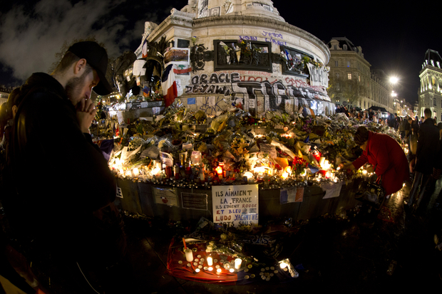 Photo : des personnes se rassemblent autour du Monument à la République sur la place de la République de Paris, le 17 novembre 2015, pour rendre hommage aux victimes des attentats du 13 novembre (AFP).