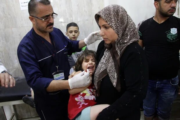 Photo : une Syrienne emmène un enfant à l'hôpital al-Razi dans le district al-Jamiliyeh d’Alep contrôlé par le gouvernement, suite à des bombardements sur le quartier al-Sayed Ali le 16 octobre 2016 (AFP).