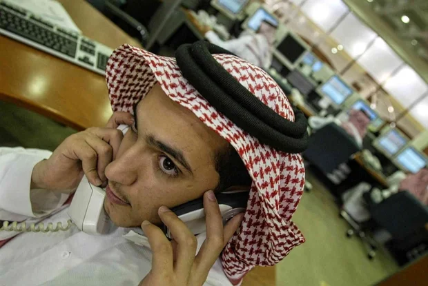 Un trader saoudien passe des ordres dans la salle des marchés de la Saudi Investment Bank à Riyad (AFP)