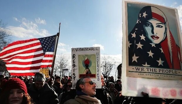 Photo : rassemblement à Battery Park pour protester contre les nouvelles politiques en matière d’immigration du président américain Donald Trump, à New York, dans l’après-midi du 29 janvier 2017 (AFP).