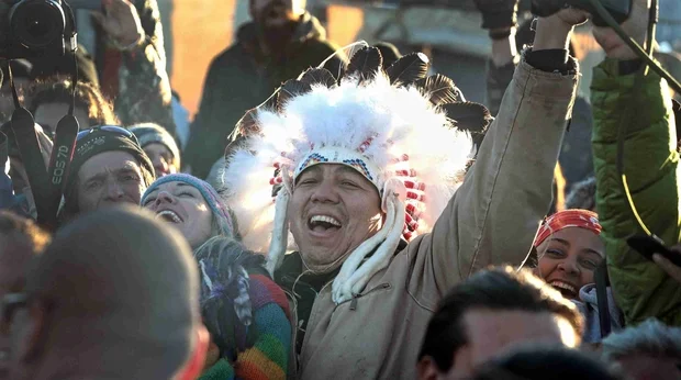 Des Amérindiens célèbrent une victoire contre le projet de Dakota Access Pipeline, en décembre 2016 (AFP)