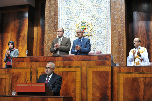 Photo : le Premier ministre marocain Abdelilah Benkirane (au centre) s’exprime au cours d’une session extraordinaire au Parlement, dans la capitale Rabat, le 12 mars 2016 (AFP).