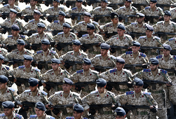 Photo : des commandos navals iraniens défilent lors de la parade militaire annuelle à Téhéran, en septembre 2014 (AFP).