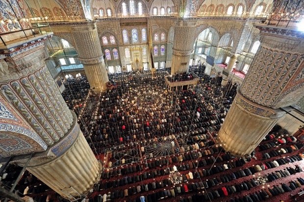 Photo : des fidèles prient dans la mosquée Bleue d’Istanbul le 28 novembre 2014, jour de la visite du pape (AFP).