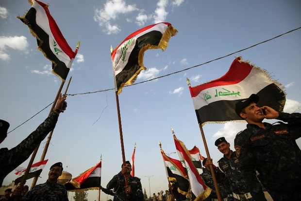 Photo : des membres de la police fédérale irakienne défilent lors d’une célébration dans la vieille ville de Mossoul le 2 juin 2017 (AFP).
