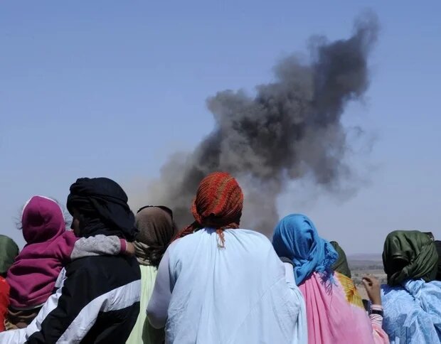 Photo : Sahraouis assistant à l'explosion de mines en février 2011 près du village de Tifariti dans le Sahara occidental (AFP)