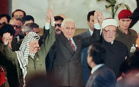 L’Organisation de libération de la Palestine (OLP), évincée du Liban au début des années 1980, a peu à peu délaissé la lutte armée et s’est s’engagée dans un processus politique qui est d’abord passé par une déclaration d’indépendance en 1988 (après l’Intifada de décembre 1987), puis par d’importantes concessions lors des accords d’Oslo (1993). A alors émergé une Autorité palestinienne aux pouvoirs limités sur un territoire discontinu.