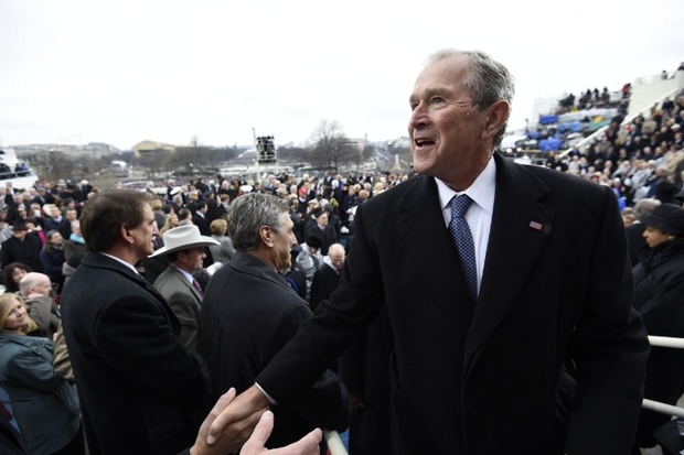 Photo : l’ancien président George W. Bush s’en va après l’inauguration présidentielle au Capitole, à Washington, le 20 janvier 2017 (AFP)