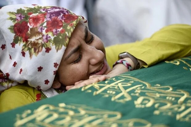 Photo : une proche de Fatma Esen, victime du double attentat à la gare ferroviaire d’Ankara, pleure devant son cercueil lors d'une cérémonie funéraire au cimetière de Gazi dans le quartier de Fatih, à Istanbul, Turquie, 12 octobre 2015 (AA).
