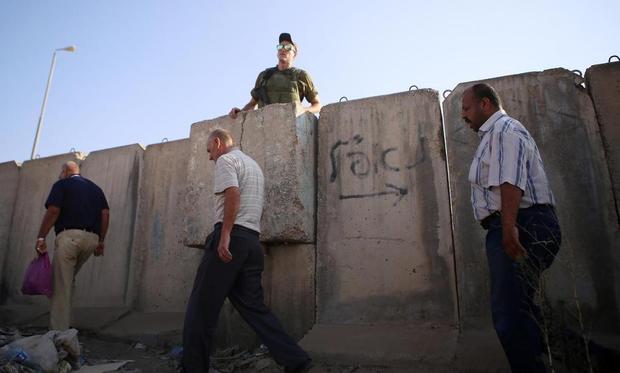 Photo : A Jérusalem, des Palestiniens se croisent en traversant la frontière de Kalandia qui divise la ville de Ramallah, en Cisjordanie, le 13 juillet, 2015. (AA)