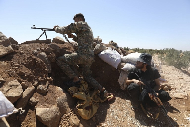 Photo : des combattants rebelles prennent position le 17 août 2018 dans la campagne du nord d’Idleb (AFP).