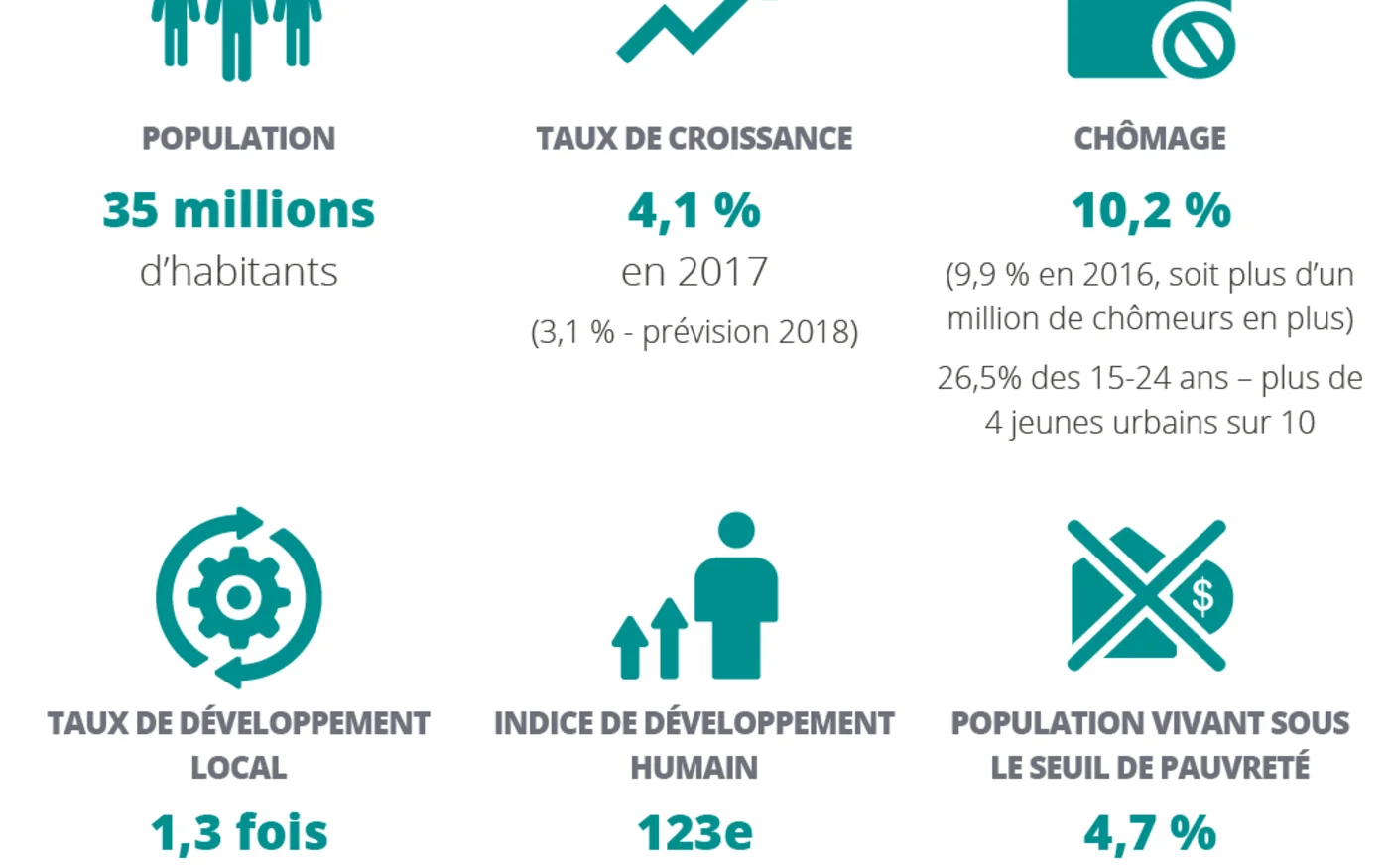 Les chiffres confirment ce constat : le Maroc est à la traîne en matière de développement humain, 123e sur un total de 188 pays. Il fait face à un taux de chômage élevé – il a dépassé 10 % en 2017 malgré une croissance favorable, touchant plus de 42 % des jeunes en milieu urbain – et à des inégalités criantes – selon Oxfam, plus de 1,6 million de personnes restent pauvres et 4,2 millions sont en situation de vulnérabilité sur les 35 millions de Marocains.
