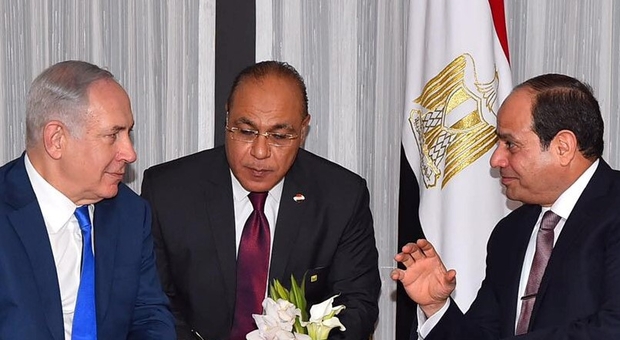Photo : le président égyptien Abdel Fattah al-Sissi (à droite) s’entretient avec le Premier ministre israélien Benyamin Netanyahou (à gauche) lors d’une rencontre visant à relancer le processus de paix au Moyen-Orient, organisée avant l’Assemblée générale des Nations unies à New York, le 19 septembre 2017 (Reuters).