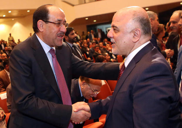 Photo : le nouveau Premier ministre irakien Haïder al-Abadi (à droite) sert la main du vice-président Nouri al-Maliki lors de la session parlementaire consacrée à la présentation du nouveau gouvernement, Bagdad, le 8 septembre 2014.