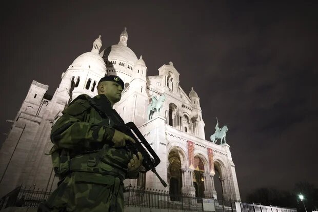 Photo : un soldat français patrouille en face de la basilique du Sacré-Cœur à Paris dans le cadre du plan Vigipirate, le 16 novembre 2015 (AFP).