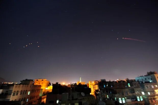 Légende photo : les Houthis chiites utilisent des canons anti-aériens alors que les frappes de la coalition dirigée par l'Arabie saoudite touchent des cibles houthies dans le cadre de l'opération « Decisive Storm » à Sanaa (Yémen), le 30 mars (AA).