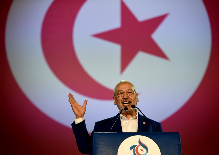 Photo : Rached Ghannouchi face à ses militants lors du Congrès d’Ennahdha en mai 2016 (AFP).