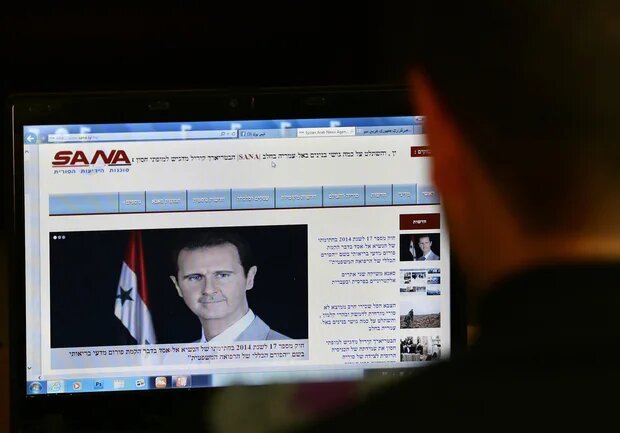 Photo : un homme regarde le site de l’agence de presse officielle du gouvernement syrien, SANA, en hébreu, le 3 novembre 2014 à Damas (AFP).