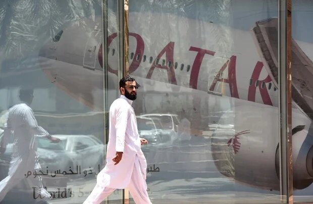 Photo : En juin 2017 à Riyad, un homme déambule devant l’agence de Qatar Airways dans la capitale saoudienne (AFP).