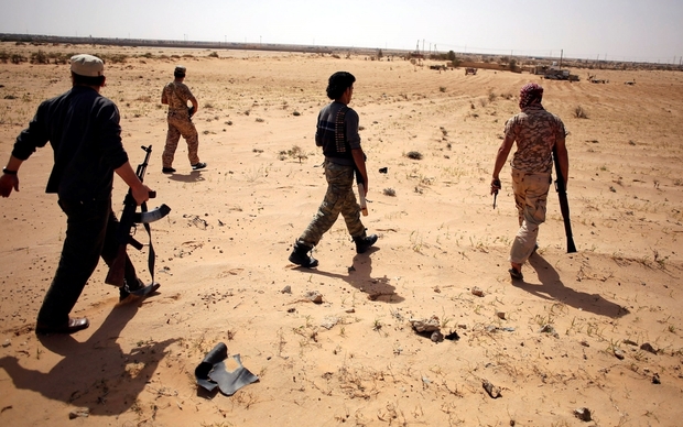 Photo : Le 17 mars 2015, lors d’une patrouille près de Syrte, des combattants de l’Aube de la Libye recherchent des combattants de l’État islamique (Reuters/Goran Tomasevic)