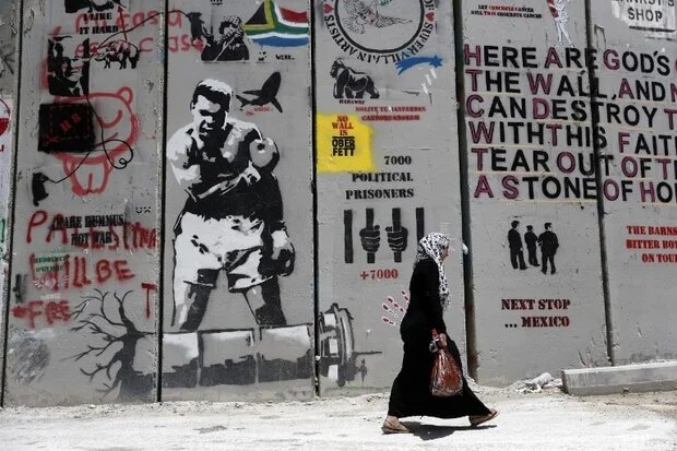 Photo : une Palestinienne passe devant des graffitis peints sur le mur de séparation controversé d'Israël dans la ville de Bethléem, en Cisjordanie, le 15 mai 2017 (AFP).