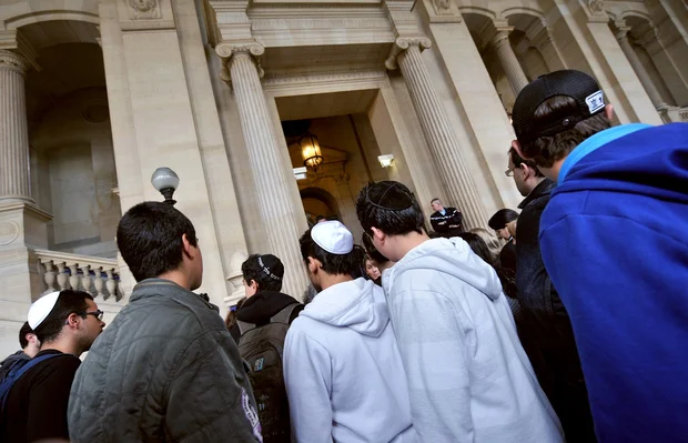 Photo : des personnes attendent la fin du réquisitoire des avocats dans la salle d’audience du tribunal correctionnel de Clermont-Ferrand (France), le 25 novembre 2008, dans le procès de 97 individus soupçonnés d’avoir contracté des mariages blancs ou participé à leur organisation (AFP).