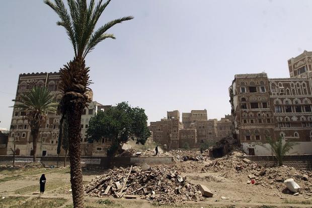 Photo : vue des dégâts sur le site de la vieille ville de Sanaa (capitale du Yémen), classée par l'UNESCO au patrimoine mondial, le 15 Juin (AFP)