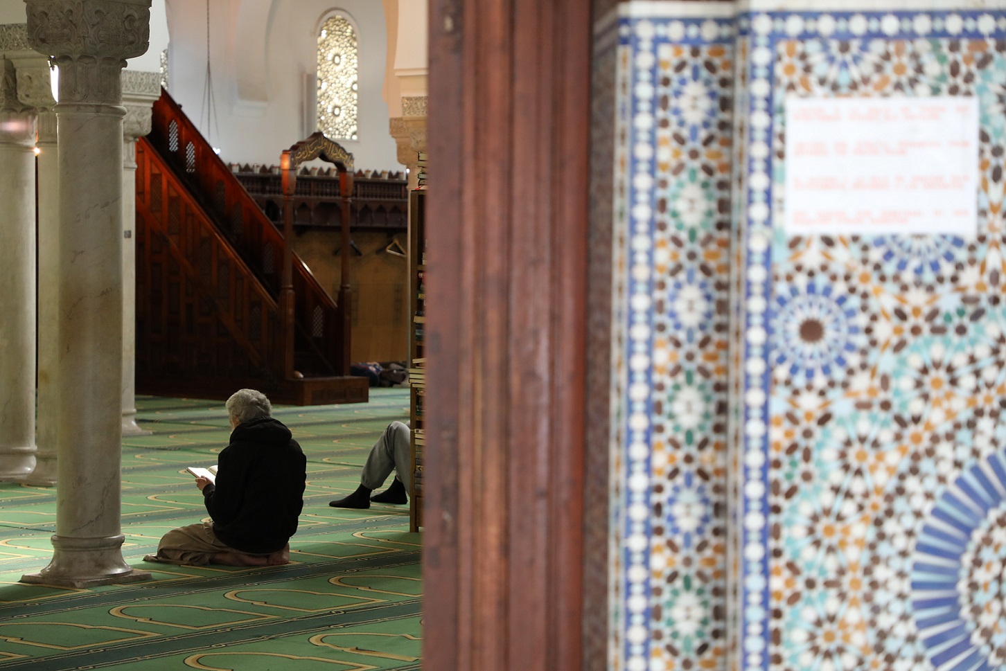 Des musulmans prient à l’intérieur de la Grande Mosquée de Paris, le 12 septembre 2017 (AFP)
