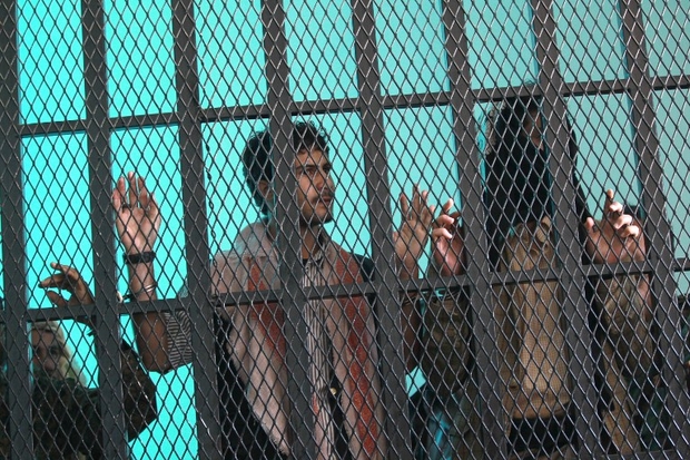 Photo : de présumés militants d’al-Qaïda derrière les barreaux au cours d’une audience à la cour d’appel de la capitale yéménite, Sanaa, le 3 février 2015 (AFP).