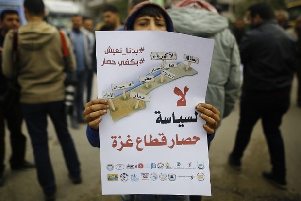 Photo : un enfant brandit une affiche lors d’une manifestation contre le siège de la bande de Gaza, à Gaza, le 6 février 2018 (AFP).