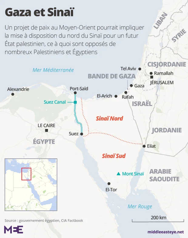 Un autre élément clé du plan concerne la mise en œuvre de projets économiques et infrastructurels dans le Sinaï pour soutenir la reprise économique de Gaza, brisant ainsi sur le long terme la connexion du territoire à l’Autorité palestinienne. Le plan comprend la construction d’aéroports et de ports, ainsi que d’une centrale électrique censée fournir aux habitants de Gaza l’électricité dont ils ont grand besoin.