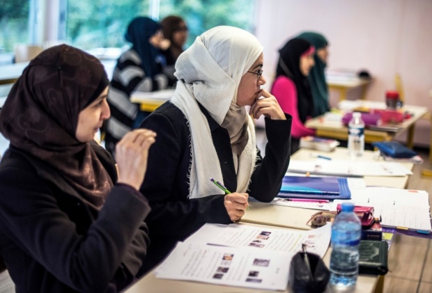 Photo : des élèves assistent à un cours d'arabe dans une salle de classe de l'Institut européen des sciences sociales, en France, le 16 octobre 2012 (AFP).