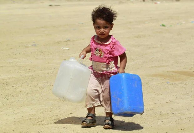 Photo : une fillette irakienne va chercher de l'eau pour sa famille (AFP).