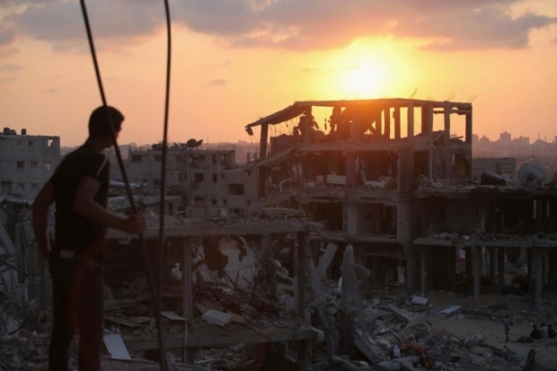Photo : un Palestinien retourne chez lui, dans le quartier d’al-Shaaf à Gaza, pendant un cessez-le-feu au cours de l’été 2014 (AA).