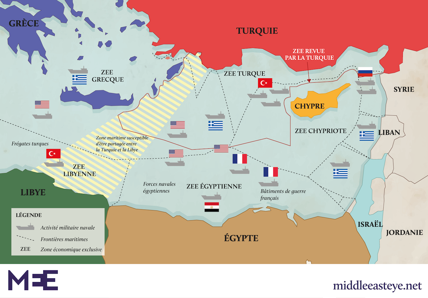 Le conflit libyen a ouvert la porte à des acteurs puissants (Turquie, Russie). L’exploitation et l’acheminement des ressources gazières en Méditerranée orientale accélère la militarisation de la zone et implique également Israël.