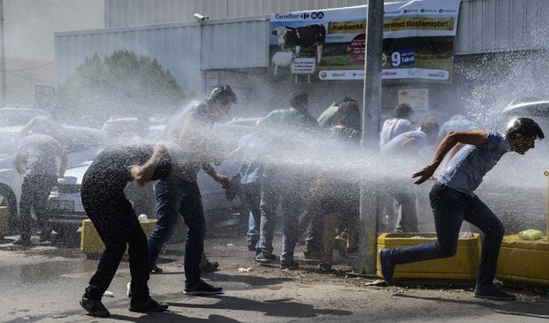 Photo : La police turque utilise des canons à eau contre les enseignants à Diyarbakir le 9 septembre 2016, lors d’une manifestation contre la suspension de plus de 10 000 enseignants pour liens suspectés avec des militants (AFP).