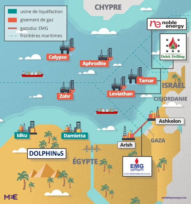 L’accord avait été conclu entre deux sociétés publiques égyptiennes et la société privée égyptienne East Mediterranean Gas (EMG), créée en 2000 pour construire un gazoduc entre l’Égypte et Israël et dont les associés comprennent l’ancien agent de renseignement israélien et magnat de l’énergie Yossi Maiman. Il s’est attiré les critiques des Égyptiens et a alimenté les soulèvements qui ont renversé le président de l’époque, Hosni Moubarak, en 2011.