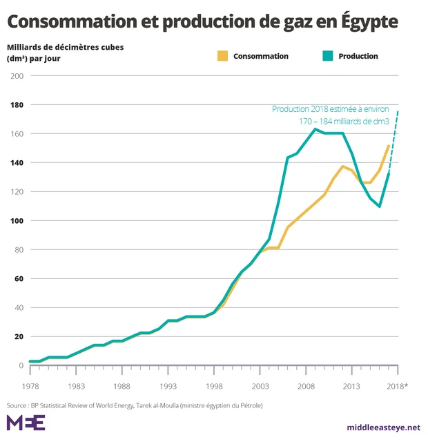 L’Égypte était incapable de satisfaire sa demande intérieure et d’honorer ses contrats d’exportation. Au lieu de cela, elle a commencé à importer du gaz naturel liquéfié à un prix élevé pour satisfaire les besoins d’une population croissante qui souffrait de coupures de courant régulières.