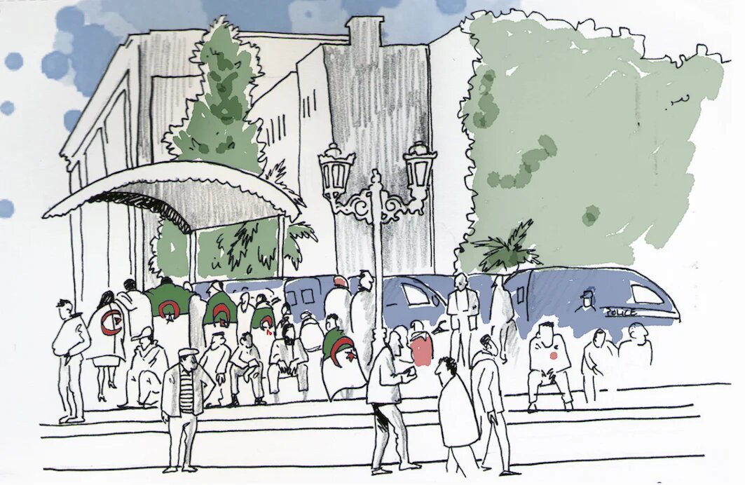 Vendredi 15 mars, acte IV de la mobilisation. Mounir ne se réveille qu’à midi, il se dépêche de prendre un café au cercle du CRB (l’équipe de football de Belouizdad) avec des amis avant de se diriger vers la place du 1er Mai.