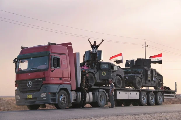 « Nous nous sommes battus partout », raconte Samar, un soldat assis à l’arrière du chargement camouflé d’un camion. Son unité a mené la dernière offensive à Falloujah, reprise à l’EI après six semaines de combats sanglants en juin.