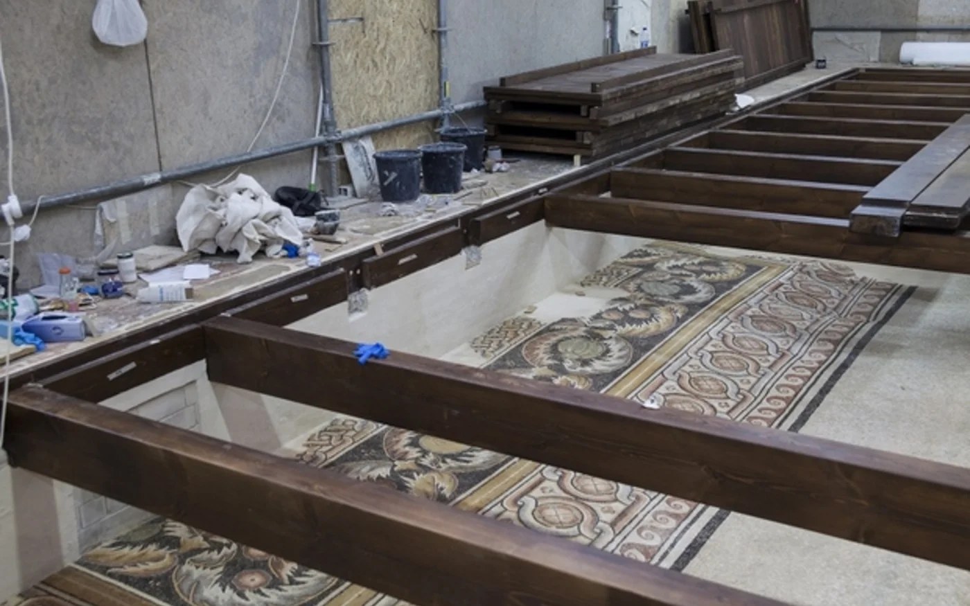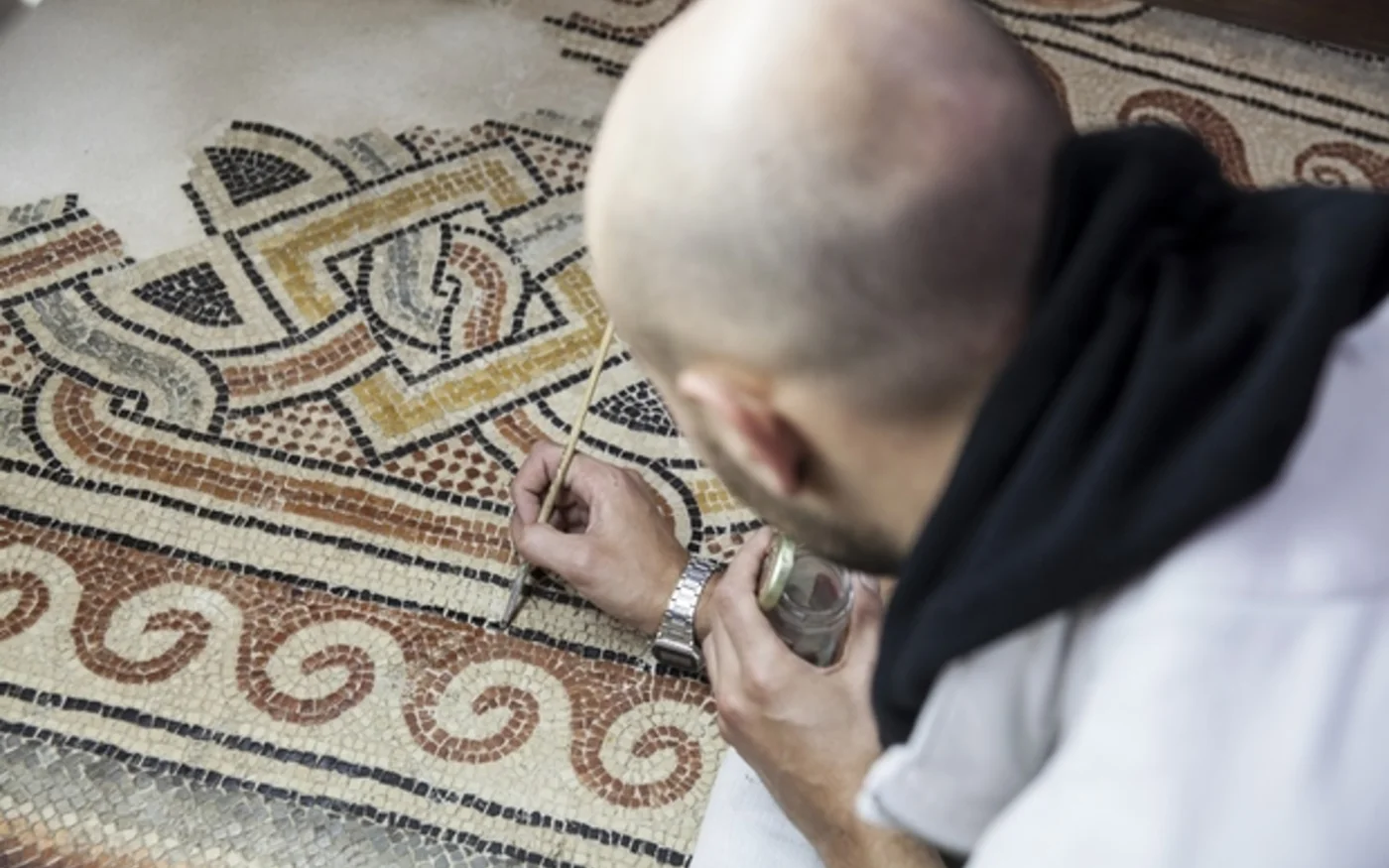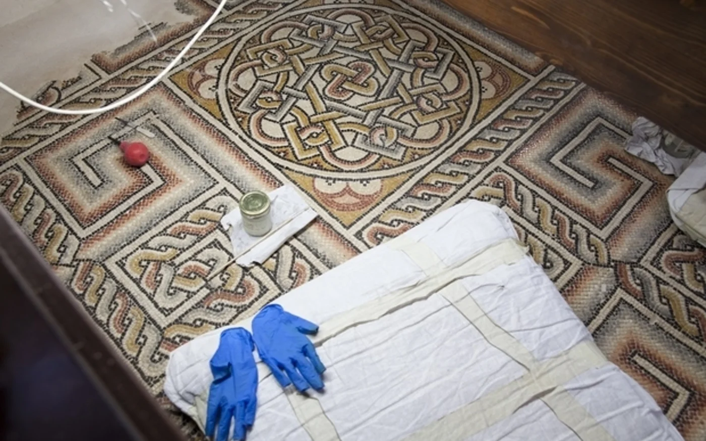 Après des années de travail minutieux, la beauté des sols en mosaïque, remontant aux origines du christianisme et longtemps enfouis, a été restaurée pour retrouver un état proche de celui d’il y a seize siècles.