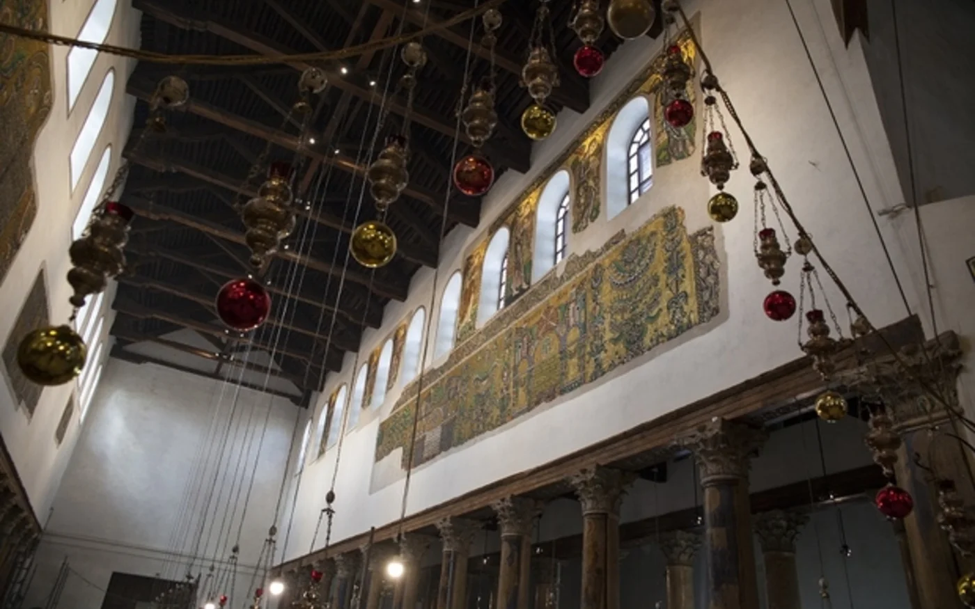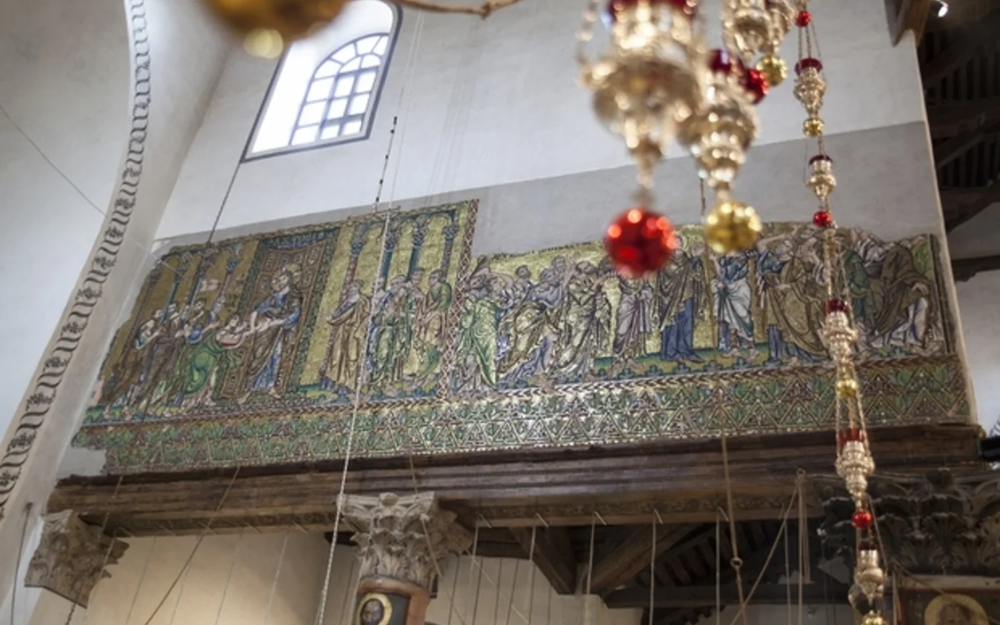 Certaines des mosaïques murales, qui ont retrouvé leur beauté originelle il y a deux ans, racontent les histoires traditionnelles de Jésus-Christ en Terre sainte.