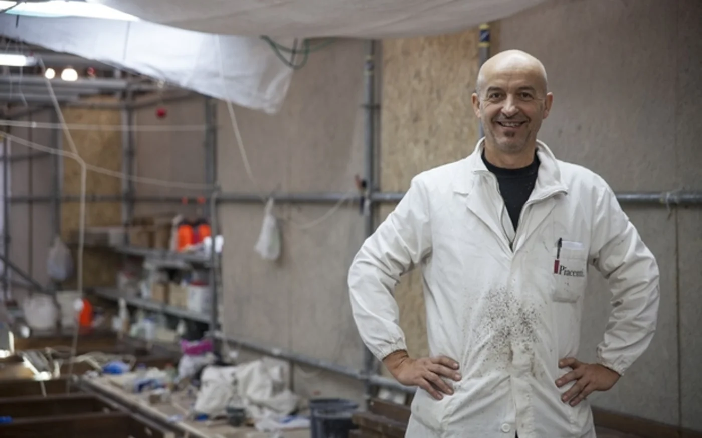 Marcello Piacenti, responsable de la production, a expliqué que son équipe se consacrait à la protection de l’œuvre d’art historique. Un solvant de protection est actuellement appliqué sur chaque minuscule carreau de mosaïque à la main ou avec des pinceaux de petite taille.