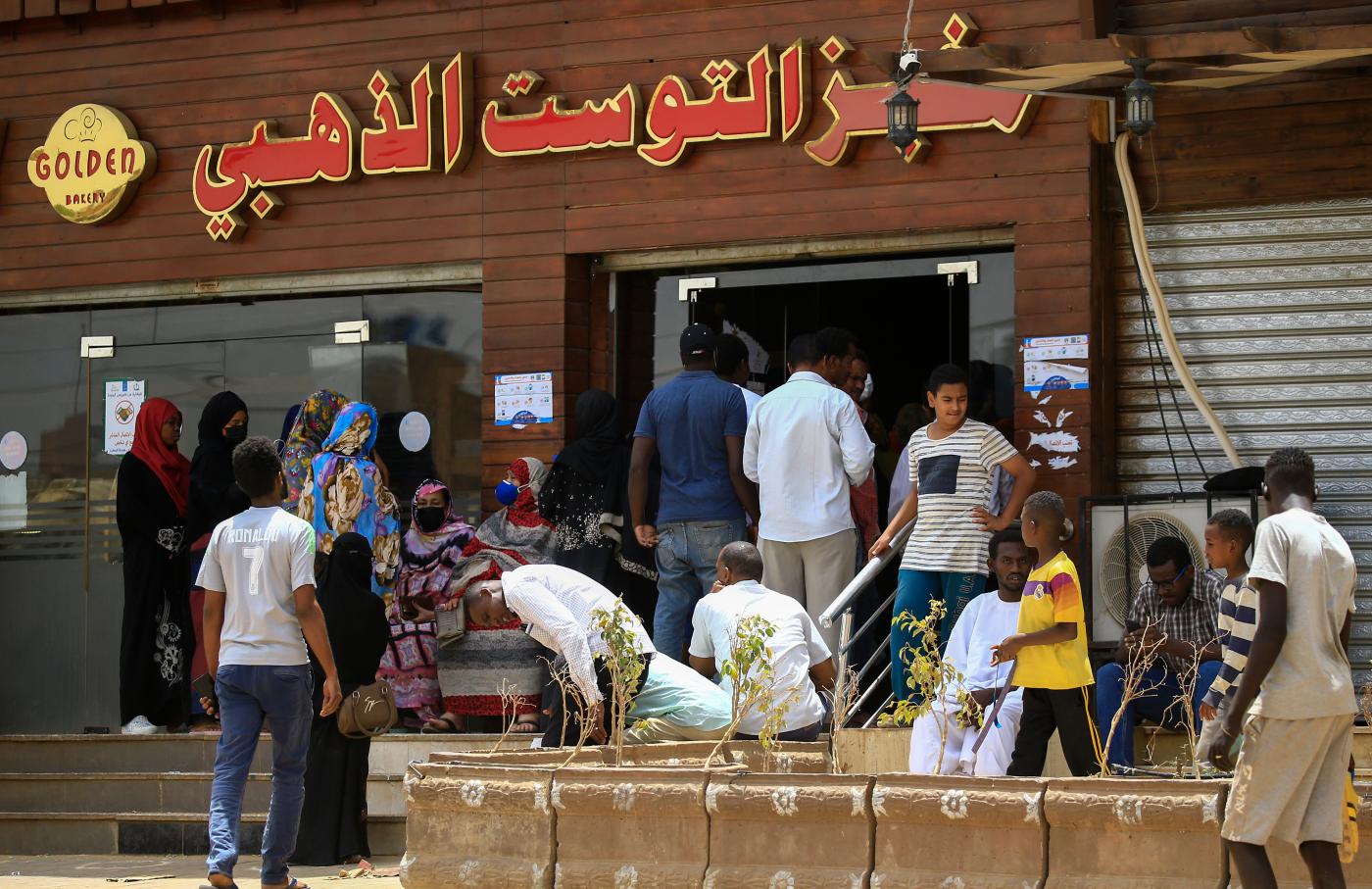 Devant la boulangerie Rose, dans le quartier de Riyad à Khartoum, des dizaines de personnes attendent leur quota de pain sous le soleil brûlant, sans tenir compte de la distance de deux mètres entre chaque personne, recommandée par les experts sanitaires pour limiter la propagation du virus.