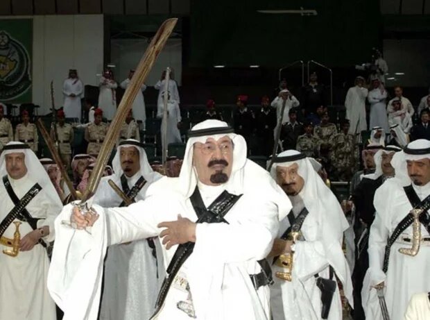 Le roi défunt Abdallah Ben Abdel Aziz exécutant la « danse des sabres » lors du festival al-Janadriyah (AFP).